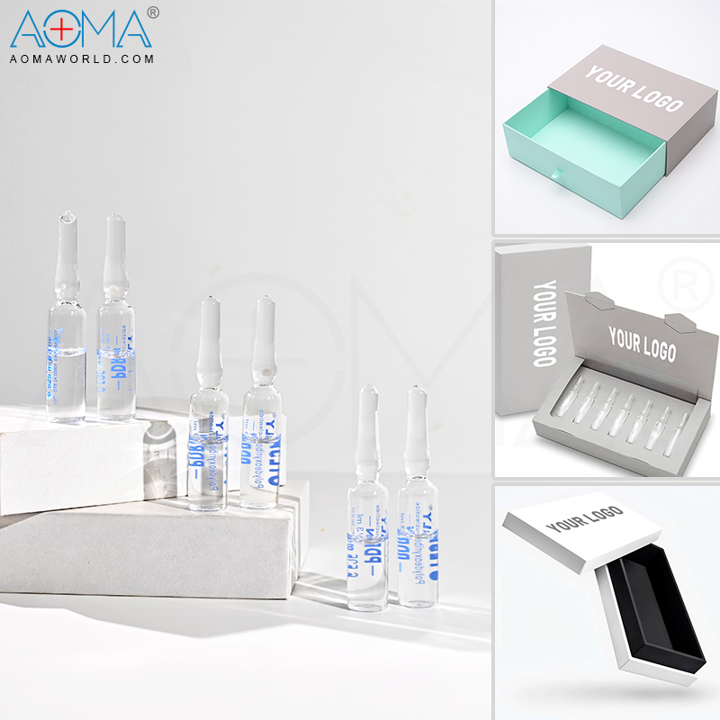 Mantenemos los más altos estándares de seguridad al encapsular nuestras fórmulas de mesoterapia en ampollas de vidrio de borosilicato de grado médico. Cada ampolla presenta una superficie interior impecablemente limpia y está sellada de forma segura con un tapón de silicona de grado médico reforzado con un robusto cierre abatible de aluminio.
