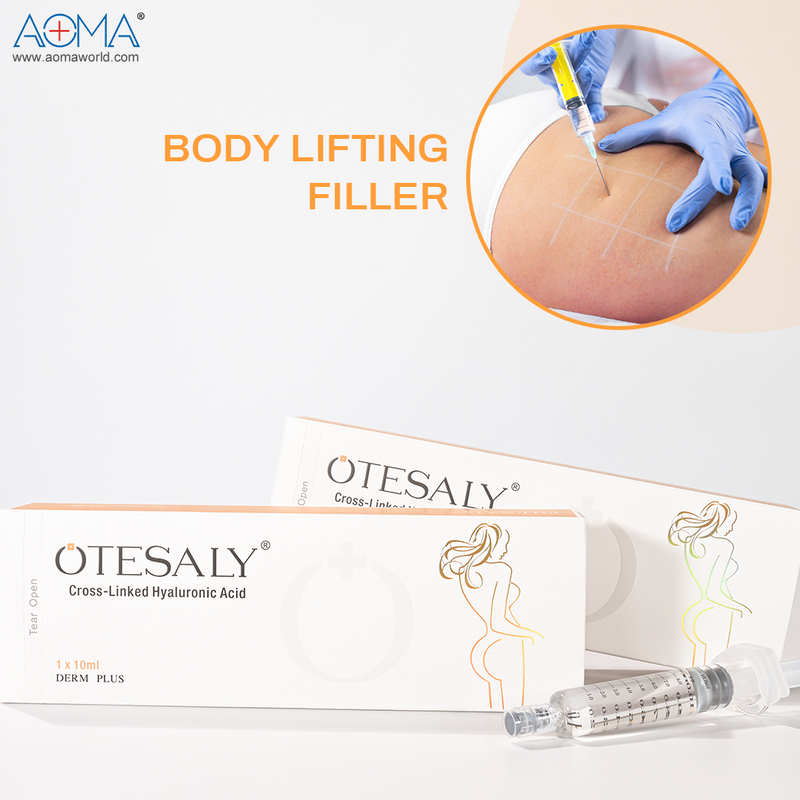 答:透明質酸填充劑是一種經過交聯的透明質酸凝膠,可改善皮膚的體積和輪廓。它是一種非動物來源的生物相容性材料,具有保濕、填充和塑形作用。我們的 DERM PLUS 10ML 使用高純度透明質酸來增強身體部位的豐滿度和緊緻度。